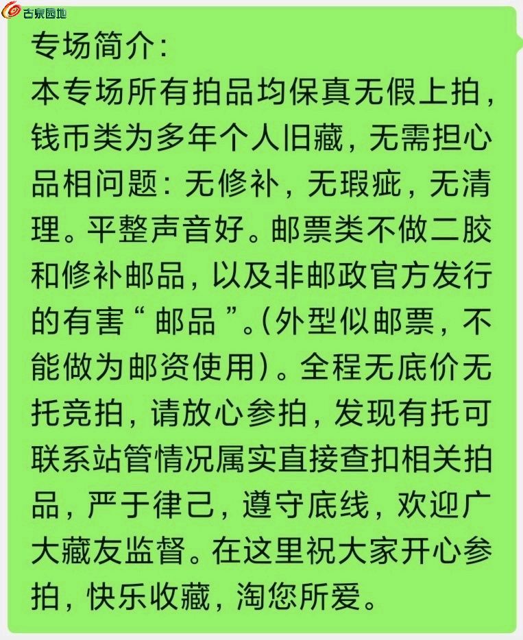 1.官方专场拍品均由古泉园地鉴定部门上手实物审核,并由鉴定委员会线上双重审核。交易过程中如产生纠纷,一律以园地评级为准。
