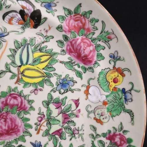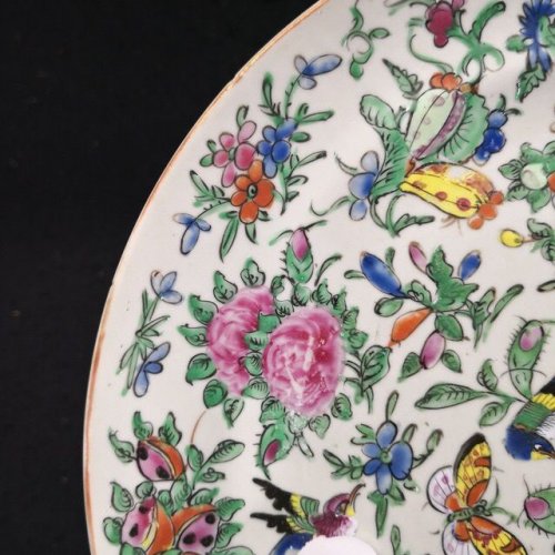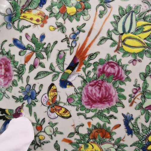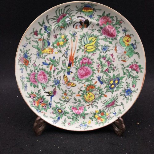 园地拍卖 » 豆青釉广彩蝴蝶花鸟纹折腰盘