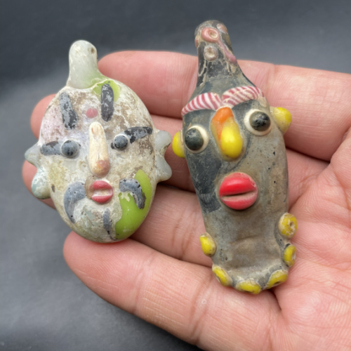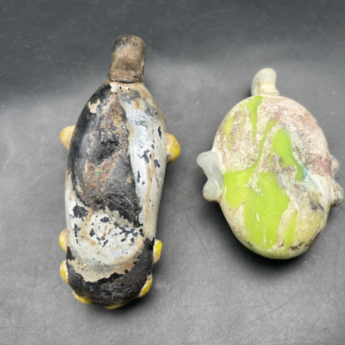 低拍老琉璃挂件一对、老琉璃、品相完好、一对重72克左右、最长一个6.8cm宽3cm左右